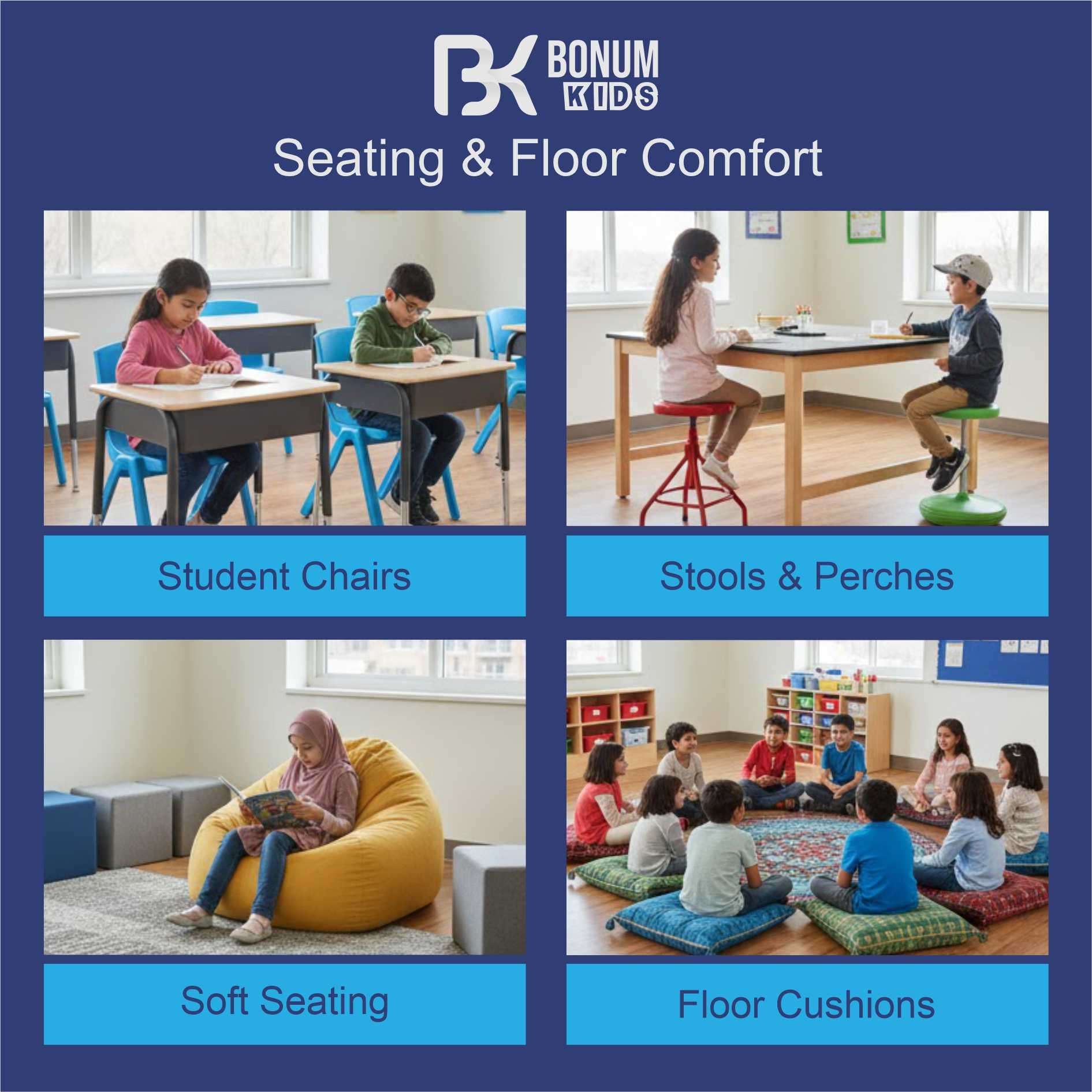 Seating & Floor Comfort | Tables & Desks | Storage & Organization | Bedding & Rest | Educational Toys & Manipulatives & More
