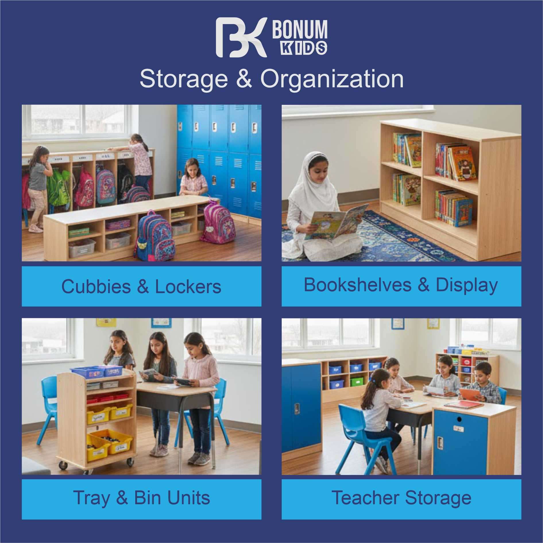 Smart storage solutions promote a tidy, self-sufficient environment where every resource has a dedicated home.